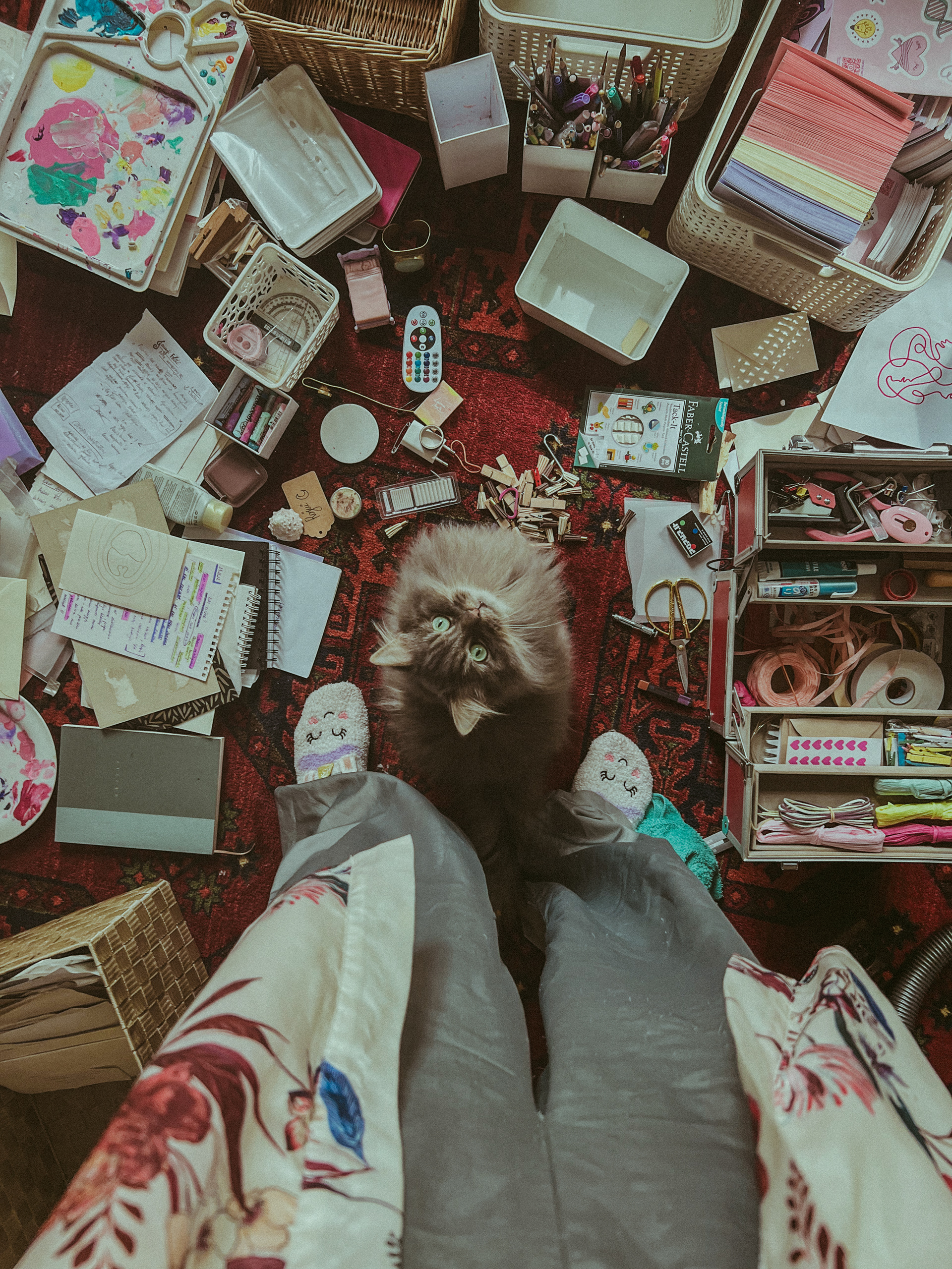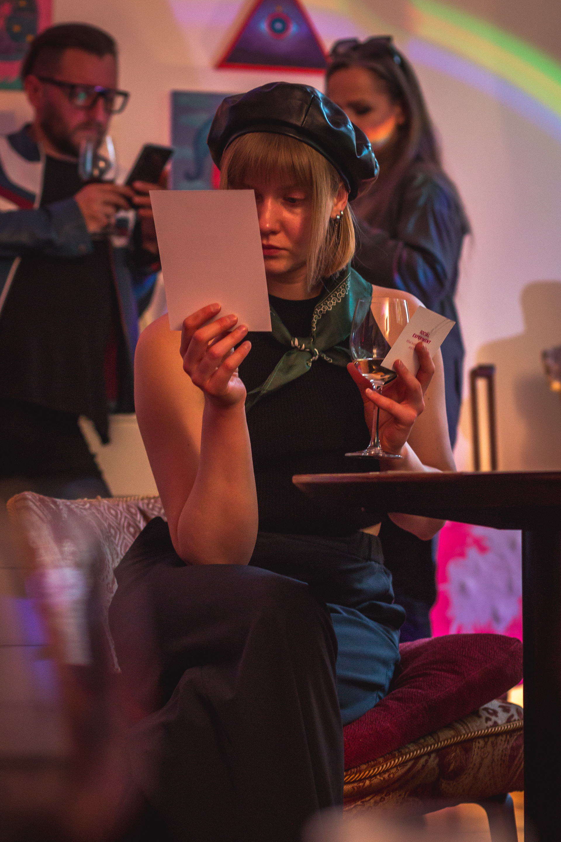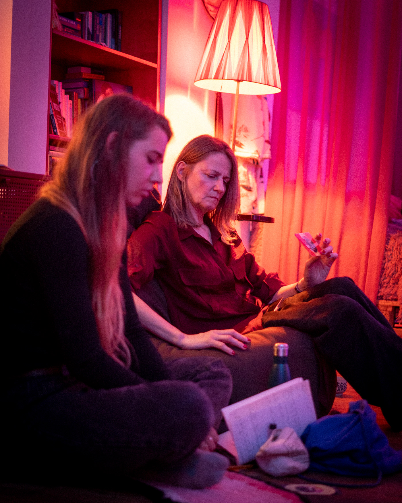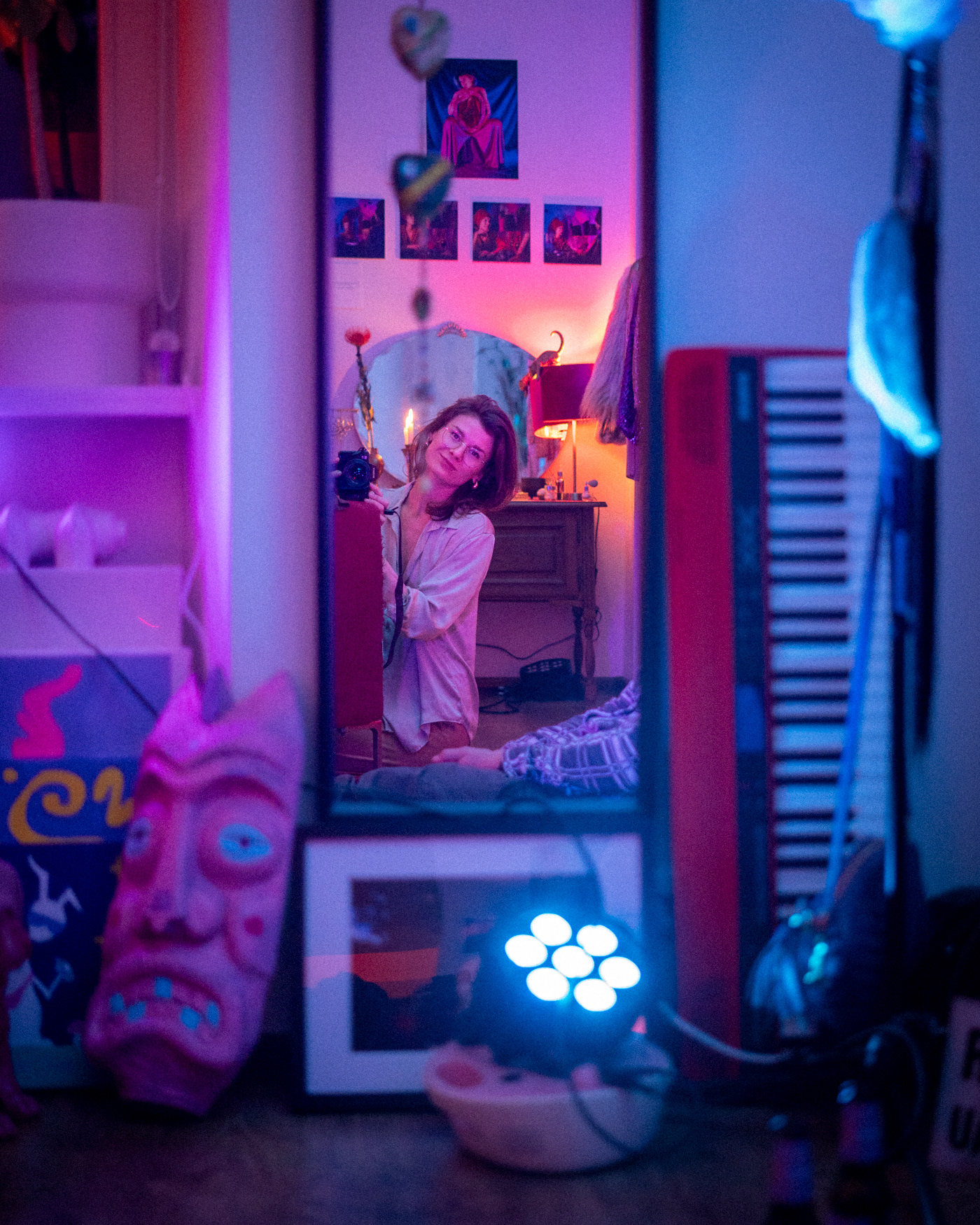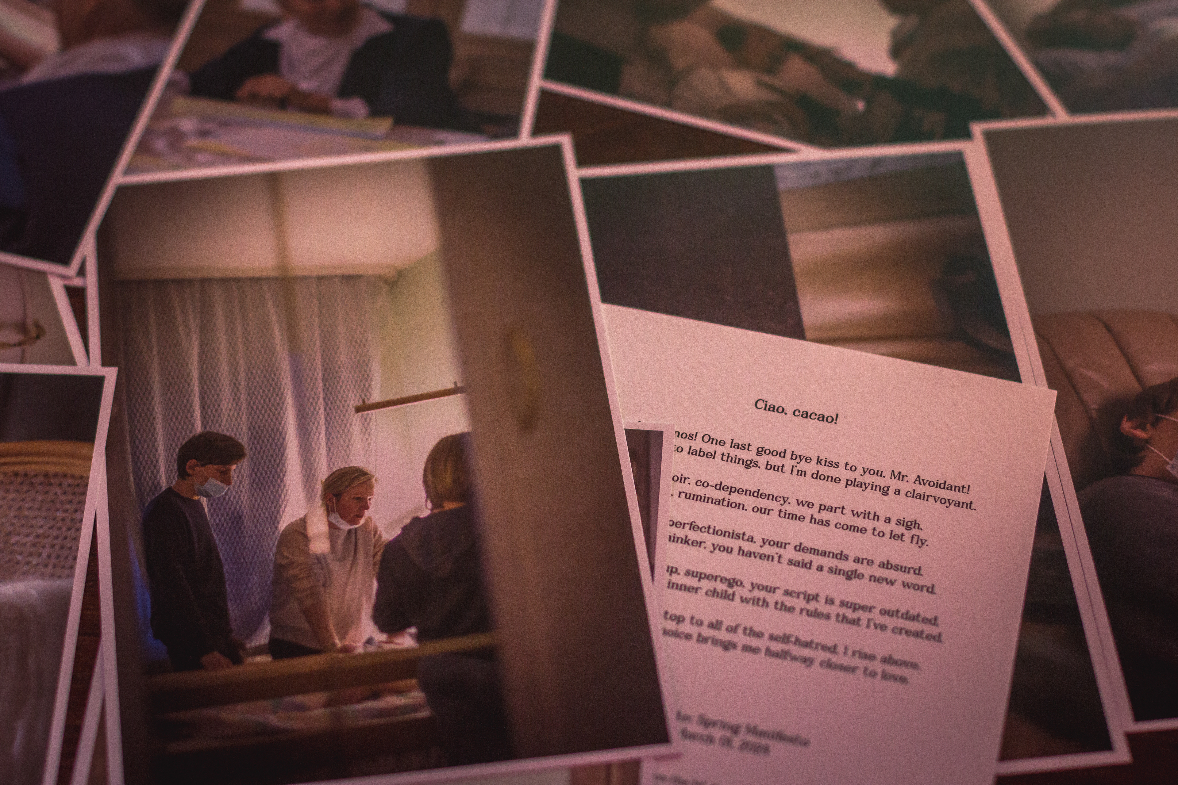 As Jovilė Sibilė was crashing into reality from Delulandia, her kindergarten friend welcomed her to settle into an apartment in Vilnius Old Town. The red sofa in the center of the room, overlooked by three paintings on the walls, became a cradle for a pivotal part of her inner healing journey. Through photography, painting, music, and the play of words, she embarked on a personal quest, unlocking hidden layers of her psyche – leaving hardly a clear wall in sight.